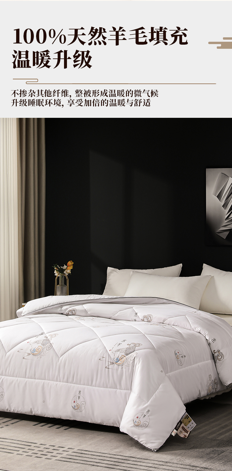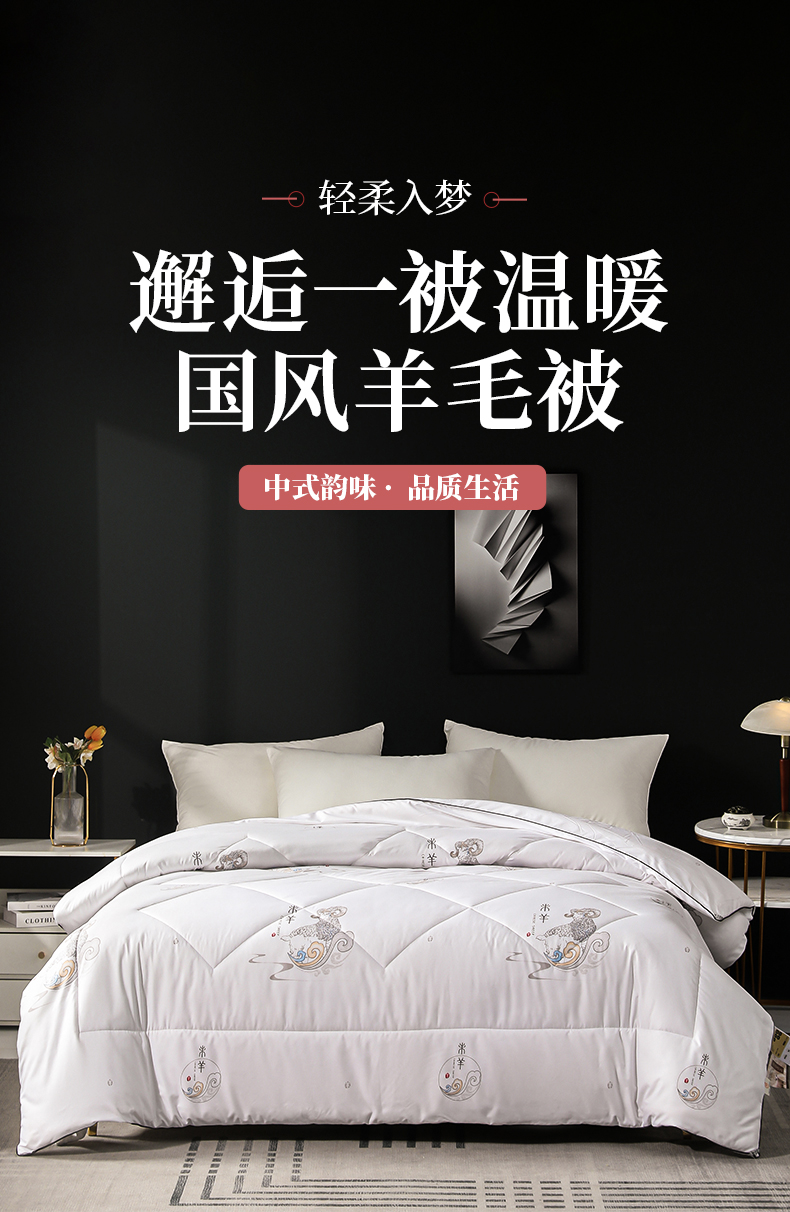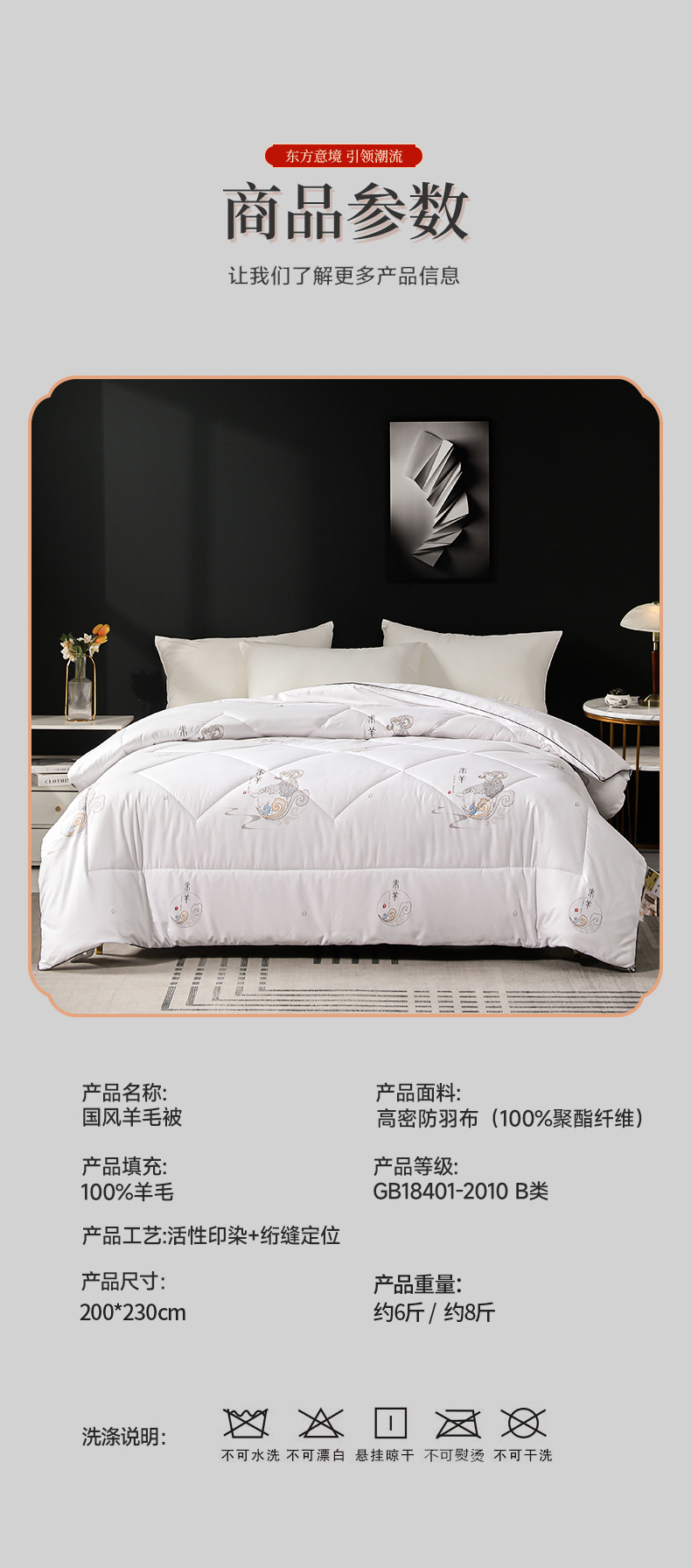 TAIHI (纷)100%国风潮酷羊毛被-白色-3000g-200