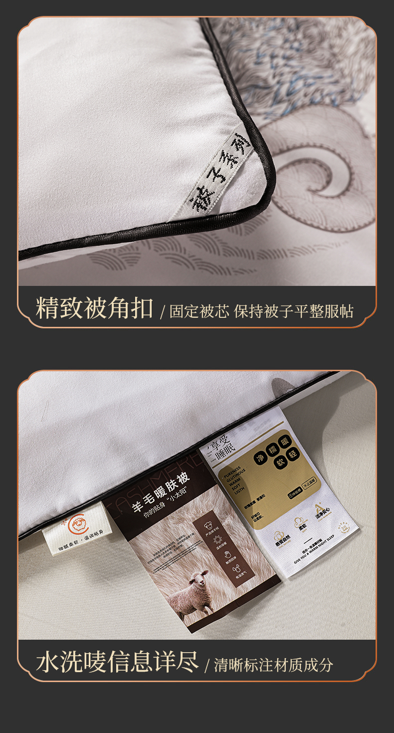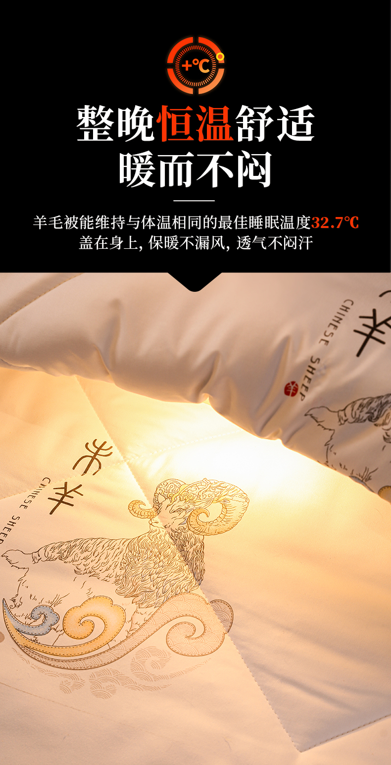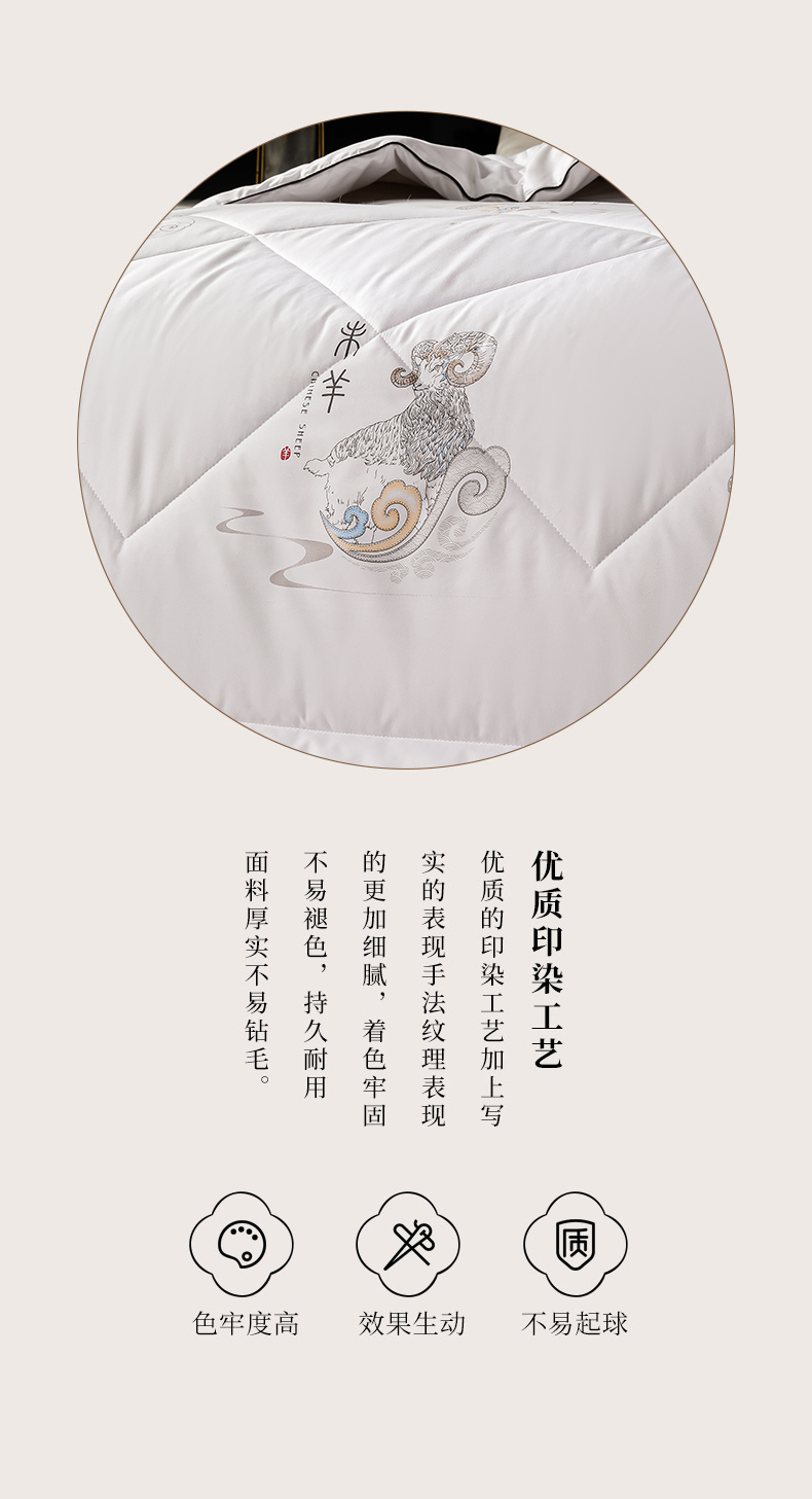 TAIHI (纷)100%国风潮酷羊毛被-白色-3000g-200
