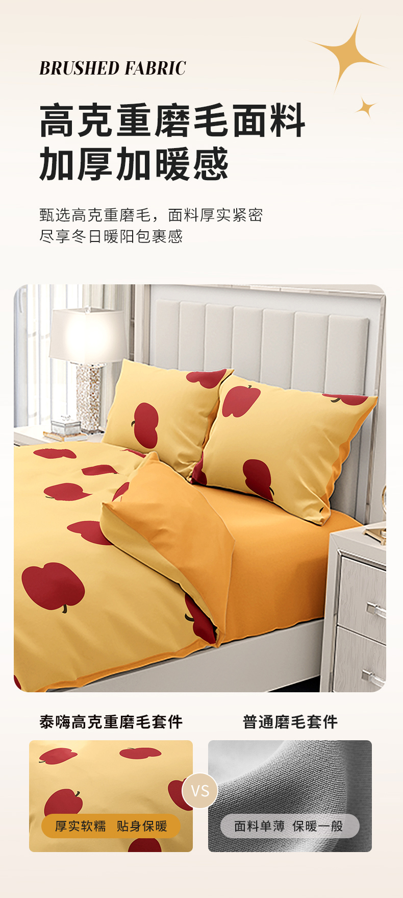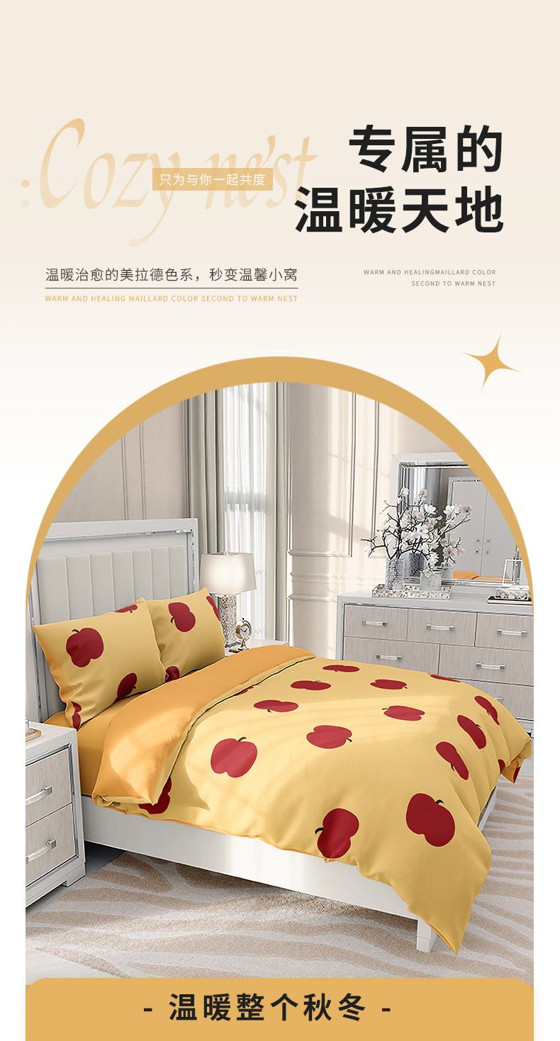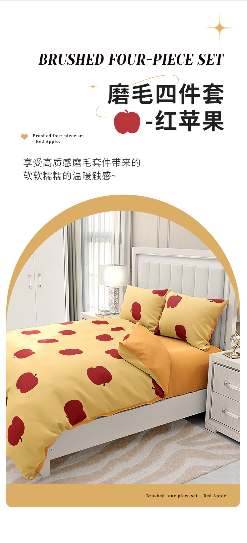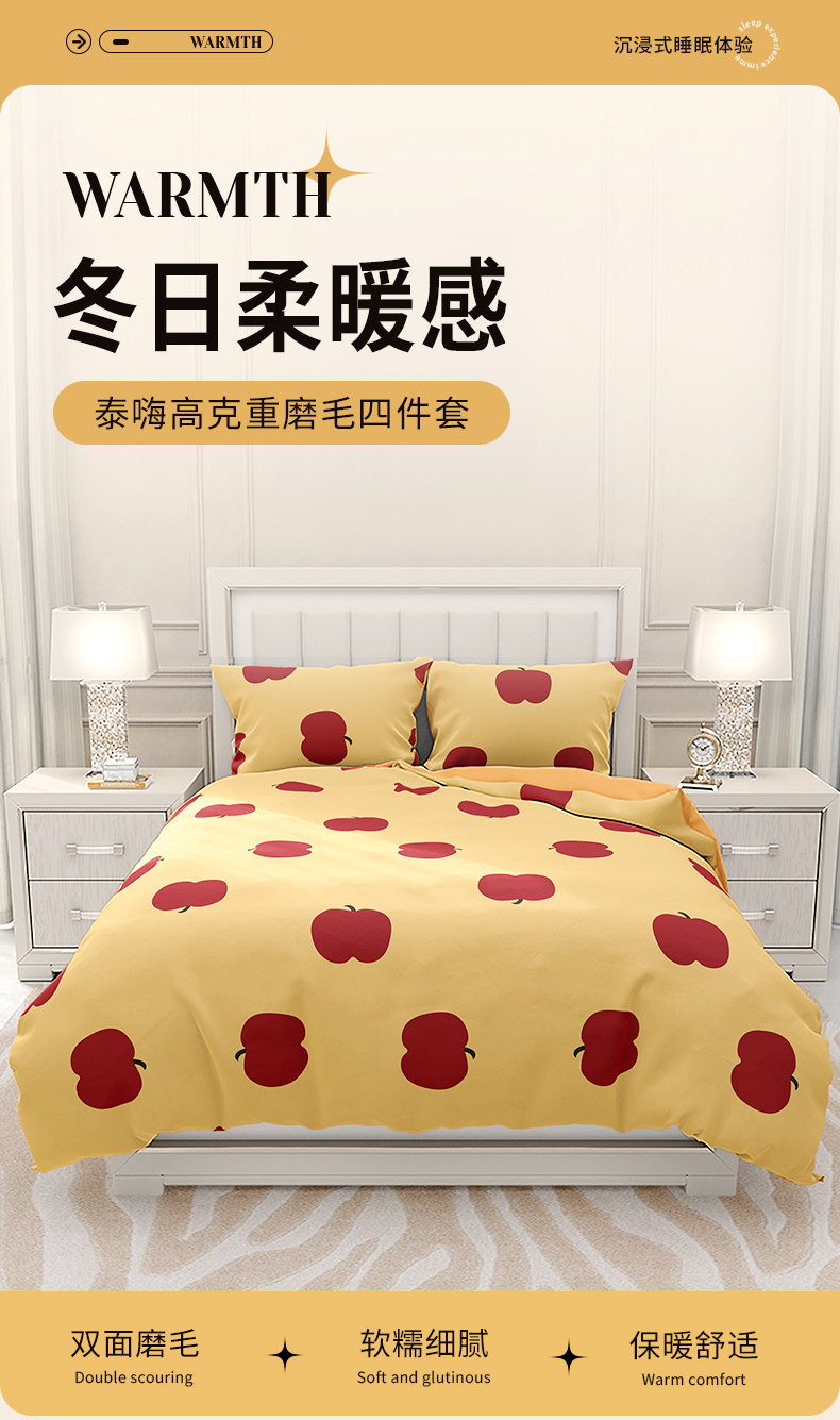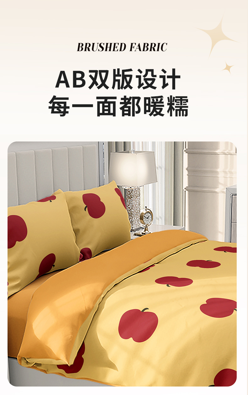 TAIHI AB版轻奢亲肤磨毛四件套-标准号 -元气苹果