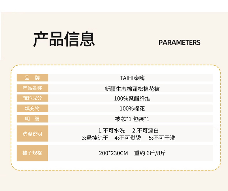 TAIHI 新疆生态棉蓬松棉花被-3000g-200